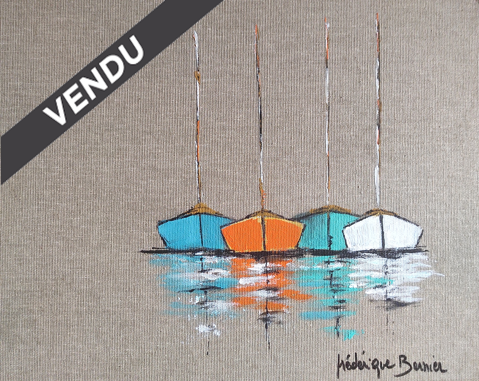 Flottille colorée - Acrylique sur carton toilé de lin - 24 x 30 cm